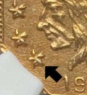On the obverse, the Indian's chin points to Star 1.