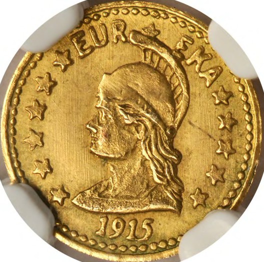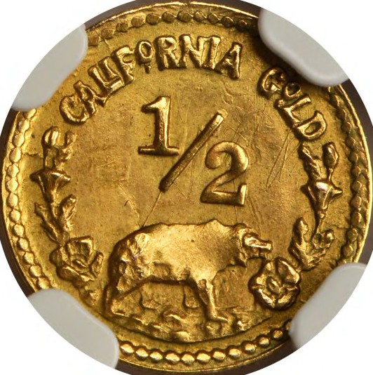 The U in EUREKA is close to the beaded border, and both uprights of